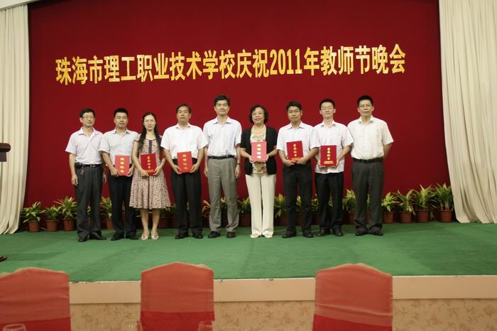2011年教师节来临之际,我校表彰优秀教师。9月9日晚,市教育局吴白白副调研员、人事科刘以威副科长、何以健老师等为我校优秀教师颁奖。获奖人员分别是:“珠海市名校长”詹红红、“珠海市名教师”唐顺华、“珠海市青年骨干教师”袁勇、“珠海市先进教育工作者”刘苑、“珠海市先进教师”欧钧陶、钟朝栋。