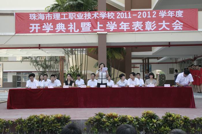 作为开学典礼的最后一项议程,詹红红校长发表讲话。她说,在全体师生多年来的共同努力下,学校从原来的一所规模较小学校,已经发展成为一所拥有4000多学生的,广东省赫赫有名的职业学校。并且被社会各界誉为“珠海市职业教育的一张亮丽名片”和“珠海市中等职业教育的一面旗帜”。
