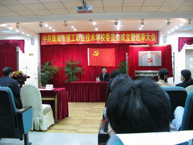 珠海市教育工委副书记王学军做了讲话,他认为这是理工人的一件政治大事和喜事,标志着继去年两校整合以来进入新阶段,他代表珠海教育工委对党委的成立表示祝贺,对党委候选人以高票当选表示祝贺,认为党员们很好地行使了民主权利。