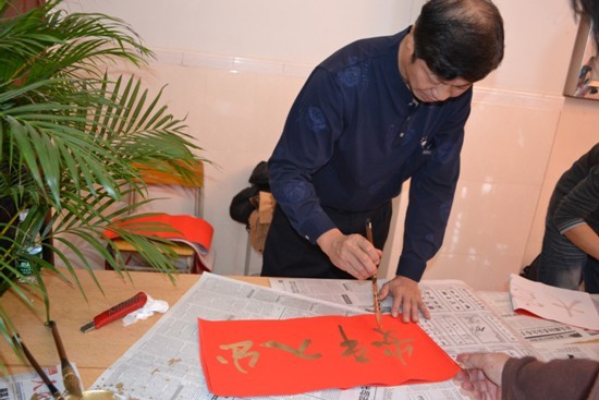 本次活动得到了广大群众的积极响应,在新堂村府大堂里围满了前来参加活动的村民,他们有的精心挑选自己喜欢的对联,有的在欣赏书法作品与老师、同学们一起讨论书法,还有的