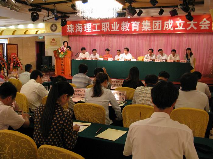 珠海市教育局职成科石玉屏科长宣布《珠海理工职业教育集团组织机构》; 其中,理事长单位为珠海市理工职业技术学校;副理事长单位为珠海市东部联迪计算机网络有限公司、广东省高州市石鼓职业高级中学、珠海汉策教育软件有限公司、环众软件(上海)有限公司东莞分公司、珠海泰坦科技股份有限公司、珠海市珠光汽车有限公司。常务理事单位为珠海安骅汽车有限公司、珠海博导医疗器械有限公司、德庆县职业教育中心、珠海市斗门区新盈中等职业学校、珠海汇流信息技术有限公司、珠海捷高职业培训学校、珠海铭昊汽车维修有限公司、神州数码网络(北京)有限公司、珠海泰坦软件系统有限公司、珠海天威打印耗材有限公司、华润万家生活超市(珠海)有限公司、广州市唯康通信技术有限公司、珠海市新思维中等职业学校、希格玛电气(珠海)有限公司、云南省禄丰县职业高级中学、珠海市印刷协会、广州易胜信息科技有限公司、珠海市职业培训中心。秘书长单位为珠海市理工职业技术学校。副秘书长单位为珠海市斗门区新盈中等职业学校、珠海天威打印耗材有限公司、珠海市印刷协会、珠海市职业培训中心。