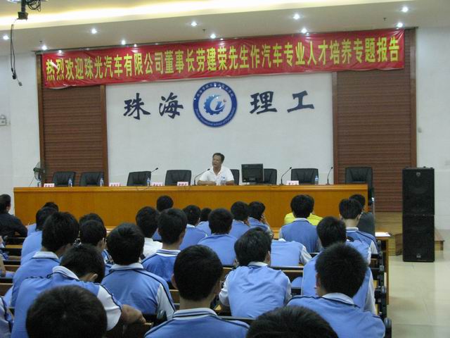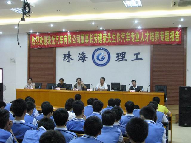 劳建荣董事长围绕“企业需要什么样的人才”的主题,为同学们分析了珠海市汽车行业的现状和发展,也让同学们了解了他心目的“人才”所具备的品质,更以自己作为一个儿子的父亲、一个公司的董事长的双重身份,鼓励同学们努力学专业,学做人,将来成为优秀的人才。