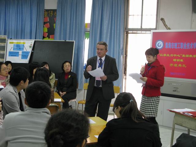 为贯彻教育部关于加强中等职业学校师资队伍建设的意见,提高中等职业学校师资水平,大力推进教师队伍建设,广东技术师范学院师资培训中心采用“送教上门”的办法,邀请了英国专家前来珠海市理工职业技术学校开展培训工作,成为珠海市理工职业技术学校全国首批国家示范校建设的一项重要内容。