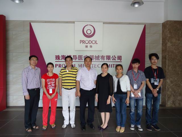 梁柏健校长、王保荣主任、张部长与珠海博导医疗器械有限公司的领导和我校学生合影