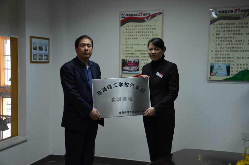 唐顺华副校长与陈总经理为珠海达田丰田实训基地挂牌