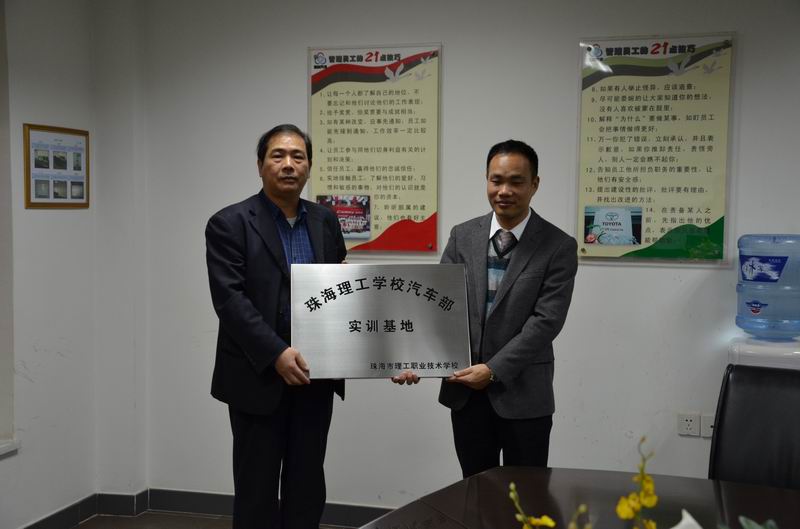最后,我校和珠海达田丰田、腾达丰田和安骅别克达成了加强校企合作的共识,共同为培养优秀的汽车维修毕业生而努力。最后,学校和企业进行了汽车实训基地的挂牌,共同为社会培养汽车专业技能人才。