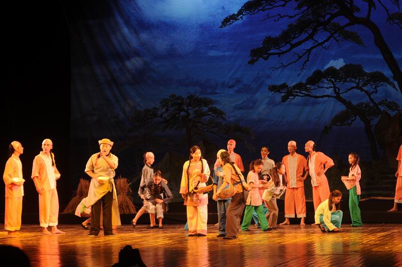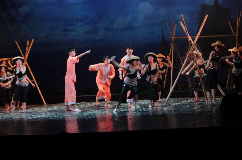 本剧融入多种本土元素,以沙田民歌为主线贯穿全剧,体现出浓浓的“珠海味儿”。全剧沙田民歌由我校黄华欢书记撰词谱曲,第二编舞由斗门校区舞蹈老师林青、龙狮队教练黄灿垣负责指导,由斗门校区舞蹈队、合唱队、龙狮队成员组成49人的舞蹈演员阵容。在首演中同学们以精彩演绎,感动了在场所有的观众,得到莅临观看演出的领导及群众的一致好评。