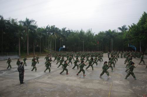 队列训练、拳术训练、逃生演练、内务整理比赛、《感恩的心》手语学习、冒雨出操等,是在短短五天中学生要经历和掌握的,在教官严格的要求、鼓励和细心示范下学生进步神速。