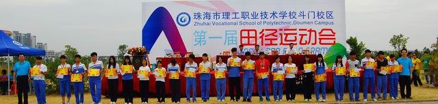 10月24至26日,珠海理工职业技术学校斗门校区第一届田径运动会隆重举行。在历时两天半的比赛中,10电子信息、11汽车3、12汽车3、12商务2等24个班级比赛成绩突出,获得团体总分优胜奖;陈建强、陈月儿、林明珍等9名同学获得个人优秀运动员奖;刘孟奇、邝庆球、李宏业等15名班主任获得优秀教练员奖;龙洁瑜、朱超文、梁洪敏等50名教师获得优秀裁判员奖。