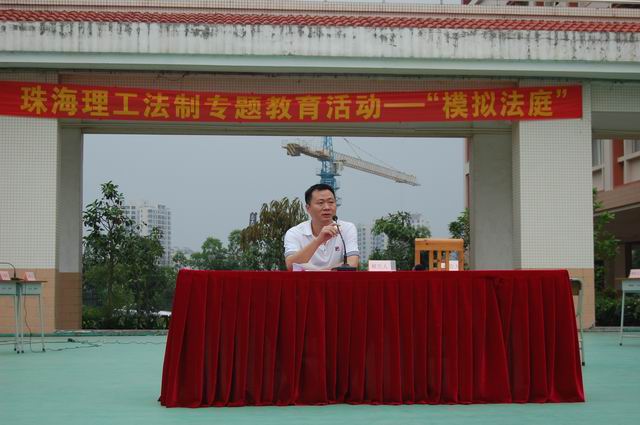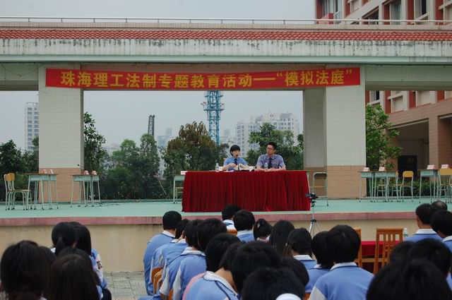 整个审理过程惟妙惟肖,角色分工明确,真正营造出了法庭严肃、庄重的氛围,让所有在场的旁听人员都真正融入到了整个审判过程中。模拟案件的案情与学生学习生活非常接近,长达75分钟的审判中,学生们都听得非常入神, 既感受到了法律的威严,又受到了很好的警示作用,收到了良好的教育效果,受到斗门区检察院公诉科万科长的高度评价。