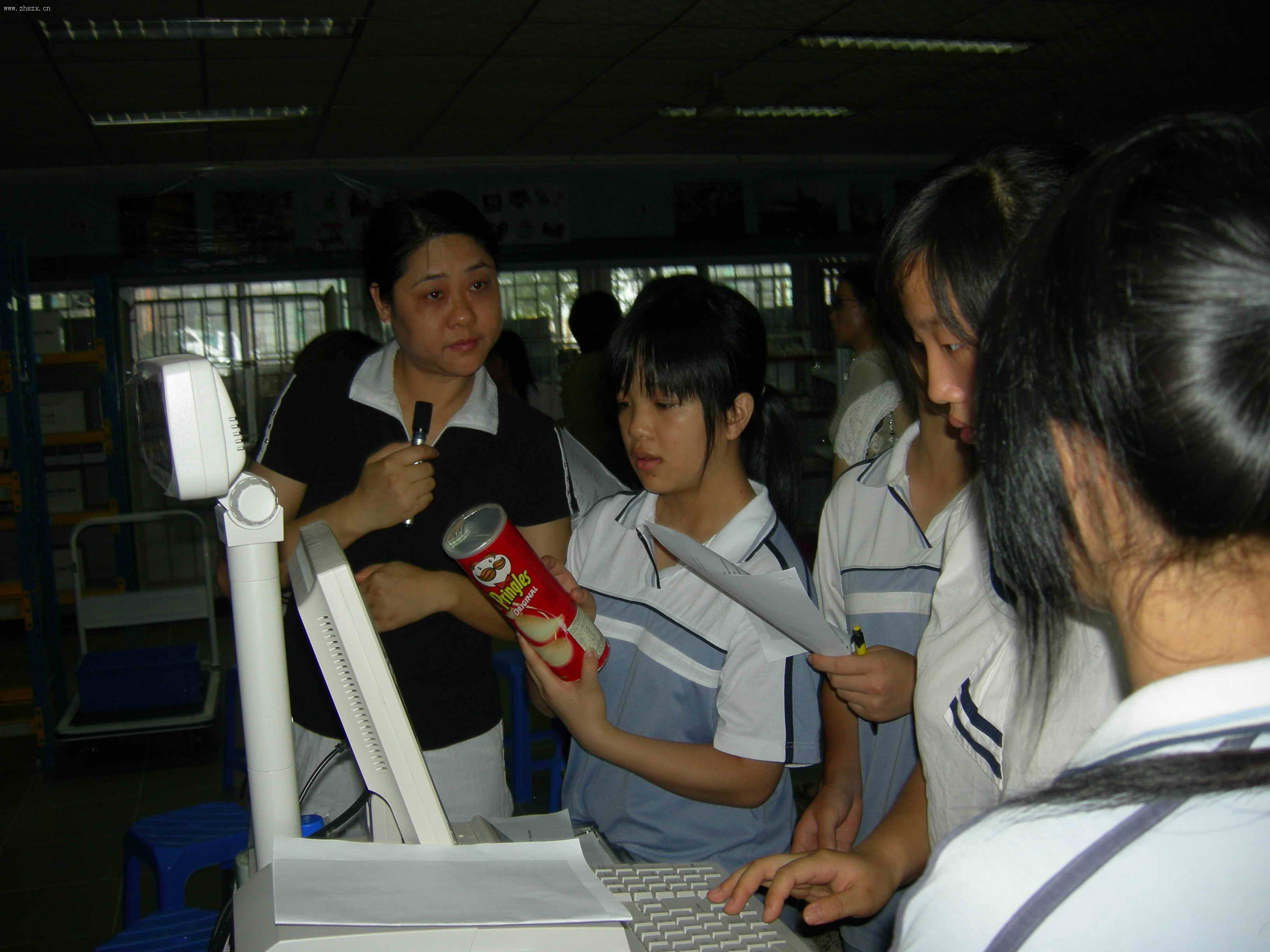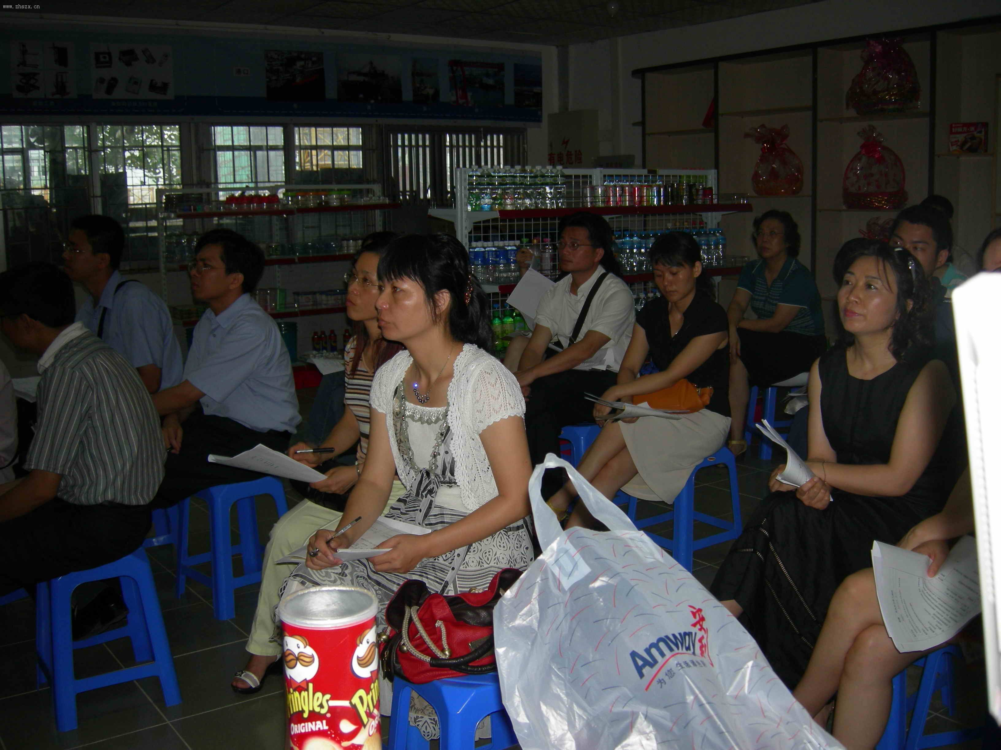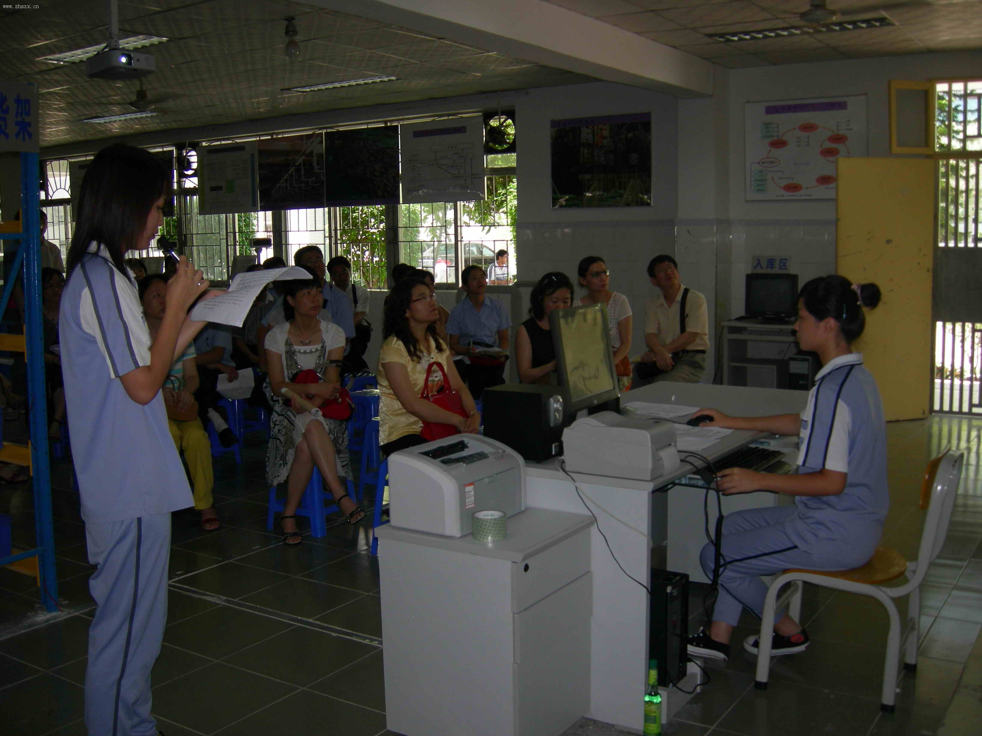 外校同行在认真听课 学生演示物流中心作业流程