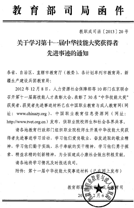 关于学习第十一届中华技能大奖获得者先进事迹的通知