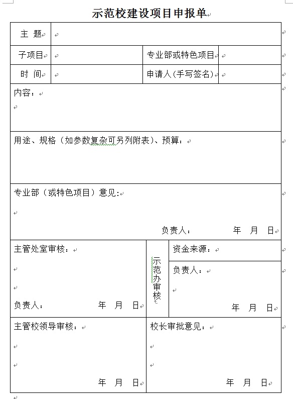 示范校项目建设审批流程及申请表