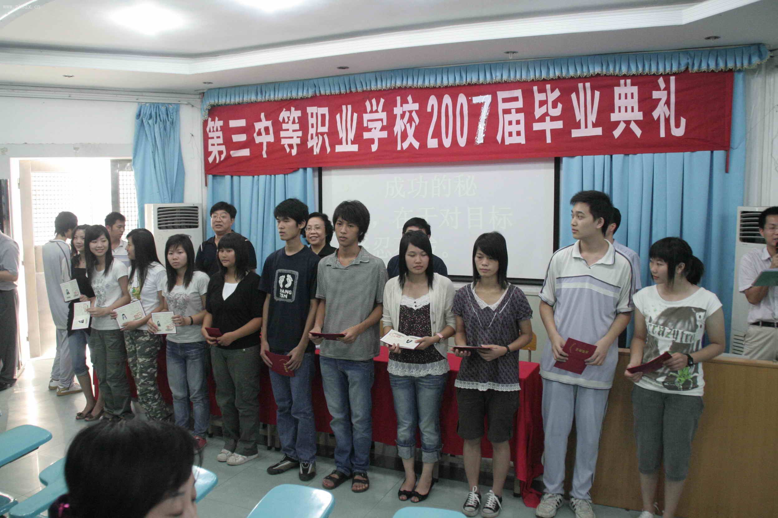 近日,我校各专业部2007届学生毕业典礼隆重举行。校领导、教务处、学生处、实训处主任出席了典礼,教师代表、全体毕业生参加了毕业典礼。