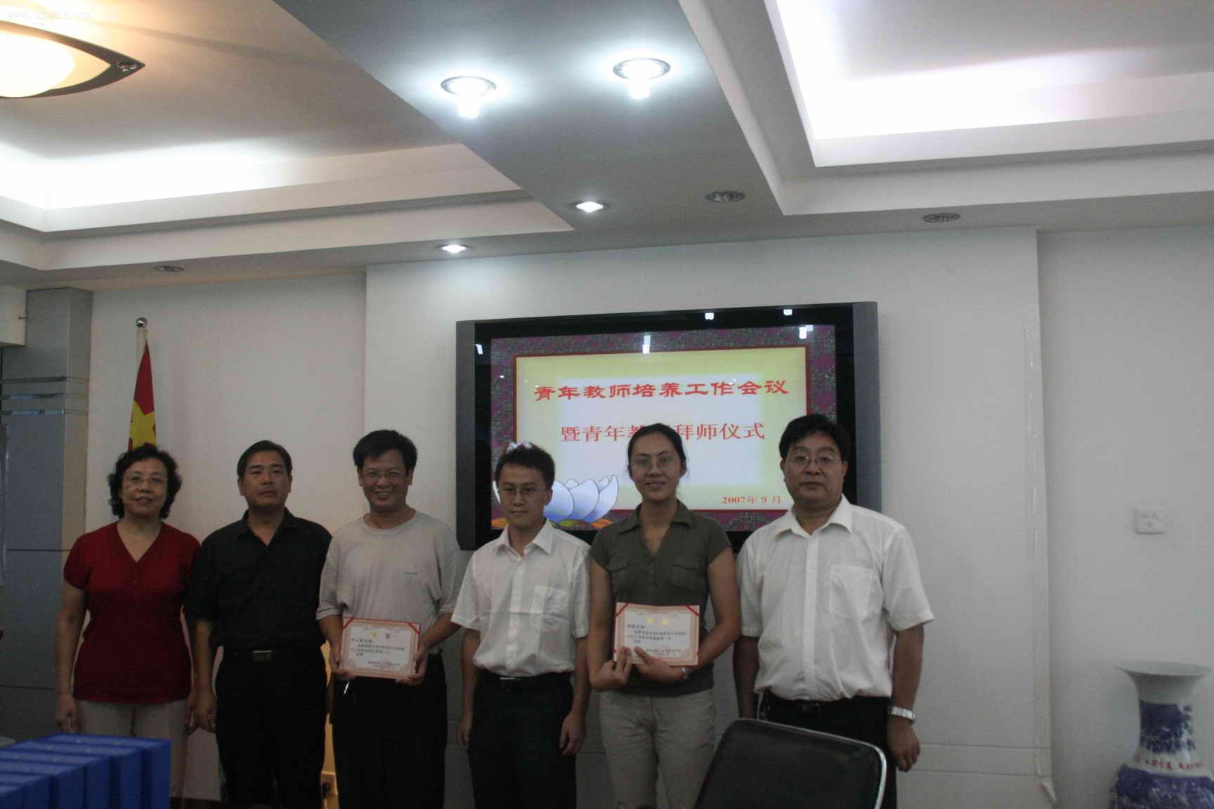杨克城副校长首先代表学校宣读了青年教师教学指导教师和班主任指导教师名单,学校为7位今年毕业的新教师、2位今年新聘任的物流专业教师聘任了师德好,业务水平高的优秀教师作为指导教师,其中教学指导教师任期三年,班主任指导教师任期一年。接着举行了简短而隆重的拜师仪式,青年教师逐一与指导教师见面及合影留念。