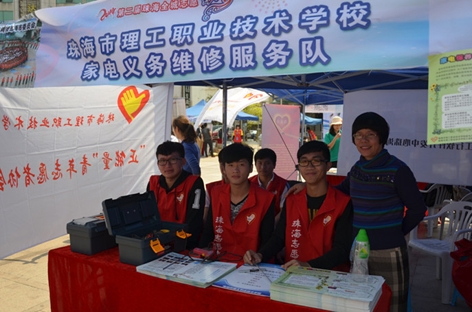 3月23日星期天,我校团委组织了家电义务维修服务队、计算机维护服务队、醒狮社、P&J社共50名师生志愿者,参加了由珠海团市委、文明办主办的珠海市志愿服务缤纷show活动。同学们用精彩的表演和专业的服务,充分展示了他们参加社团训练的成果。