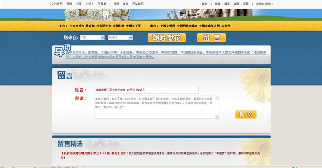 在系列活动中,我校团委积极引领学生广泛开展“网上祭英烈”活动,让学生们撰写感言体会,发表感言心声,表达对先人的感恩和敬仰之情。鼓励各团支部利用班会课,开展以缅怀革命先烈为主题的“红色经典诵读”、“弟子规诵读”、“故事会”等活动,让青少年们能够深入领会革命精神、学习中华传统文化。