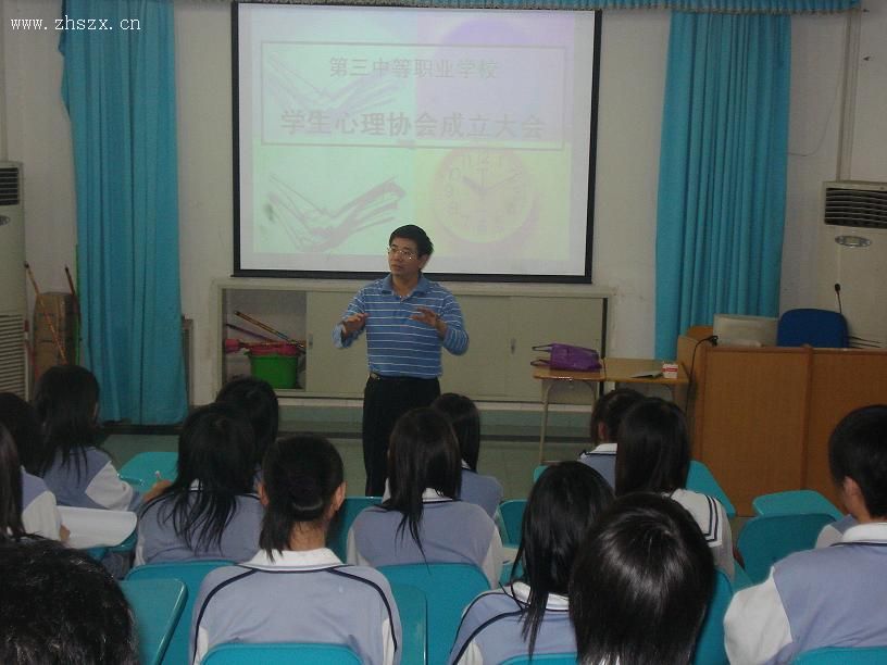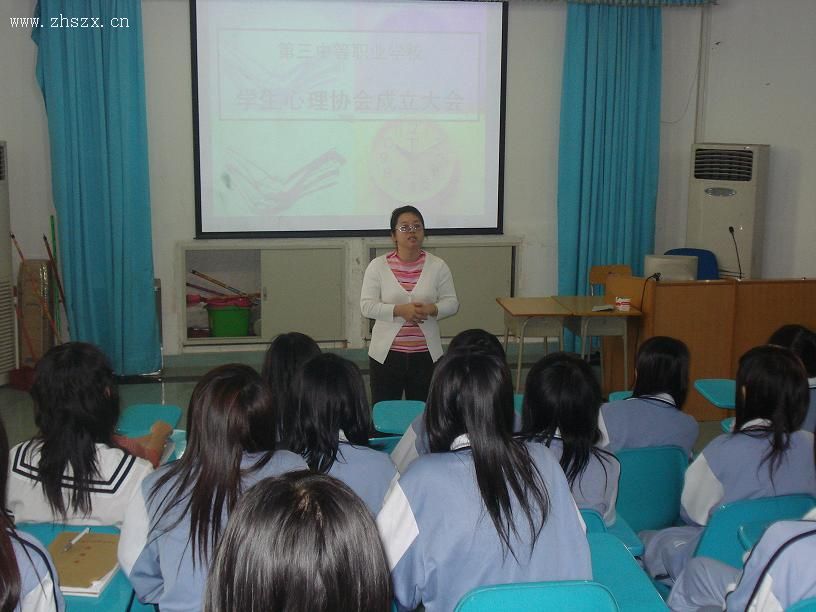 本月13日(星期二),为了壮大我校心理健康活动,加强学生心理素质建设,经校决定,心理兴趣小组正式更名为学生心理协会,并在本校三楼电教室举行了成立大会。会议邀请了王健副校长,冯丽萍老师和陈小芳老师参加。在会上,王健副校长作了重要讲话,阐述了学生心理协会成立的意义,强调了成立的重要性及必要性,萌发了同学们强烈学习心理健康知识的欲望。接着,冯丽萍老师对学生心理协会的任务作了说明,安排了会员学习心理健康知识方面的内容,并且以生动的事例作辅助,让同学们更懂得了以心理协会为家的概念,更积极认真地去爱护这个协会。最后,陈小芳老师宣读了本协会的章程。至此,我校学生心理协会正式成立。