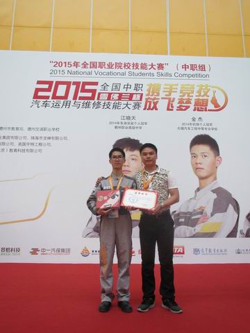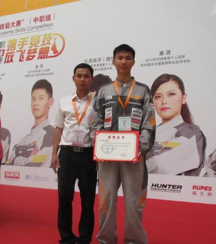 周仲才获得汽车空调维修项目二等奖,指导老师石也言