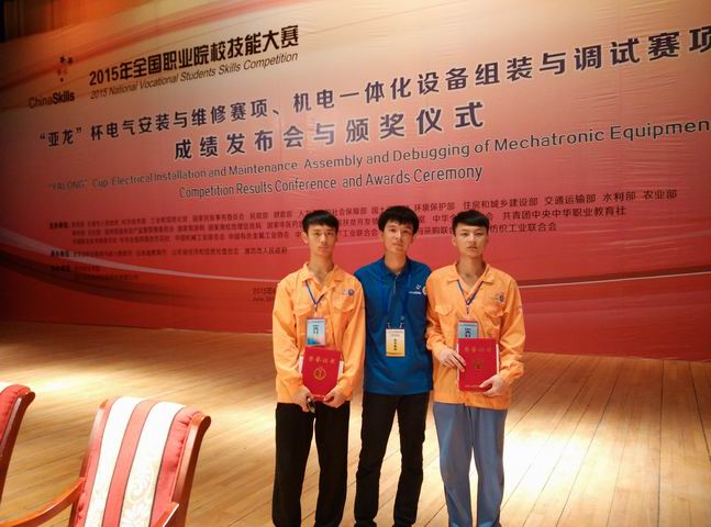 吴旭文、廖文锋在机电一体化设备组装与调试项目中获得二等奖, 指导老师是吴俊杰、李雪颖;林超朗、崔鹏获得电气安装与维修项目二等奖,指导老师是陈伟平、夏钰尧;肖建、崔振强获得定期维护和车轮定位项目二等奖,指导老师是徐涛、苏小举;周仲才获得汽车空调维修项目二等奖,指导老师石也言。黄嘉良、梁振国、祝良杰获得光伏发电设备安装与调试项目三等奖,指导老师是邹旻、张箭;欧宇恒、张锦业、郑康宁获得物联网技术应用与维护项目三等奖,指导老师是李杏敏、王旭龙;欧阳岭南、韦国发、张启明获得网络布线项目三等奖,指导老师是赵国斌、叶志伟;龙荣辉获得车身涂装(涂漆)项目三等奖,指导老师是温柳文。