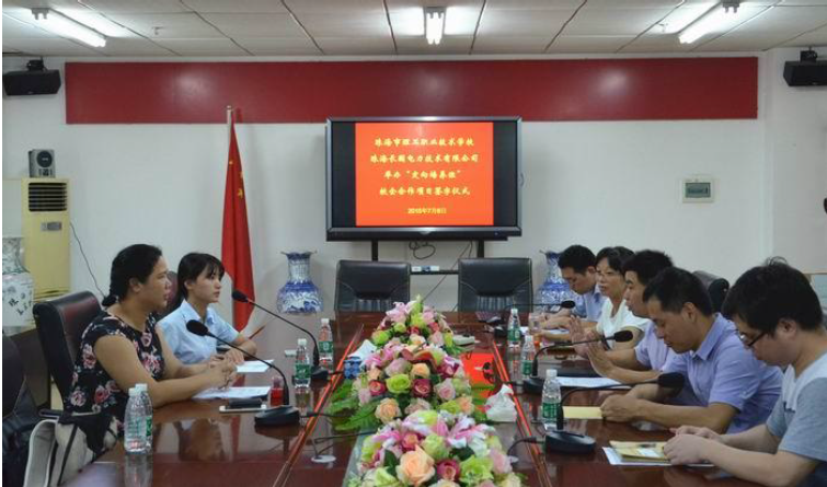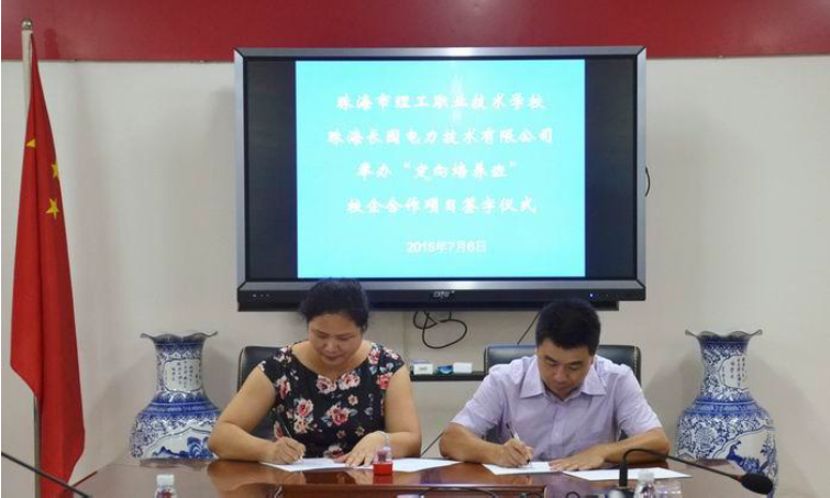 2015年7月6日下午,我校和珠海长园电力技术有限公司签订了举办“长园电力定向培养班”的校企合作协议。