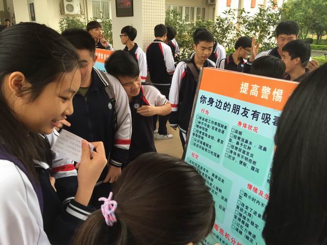 同学们观看禁毒宣传海报
