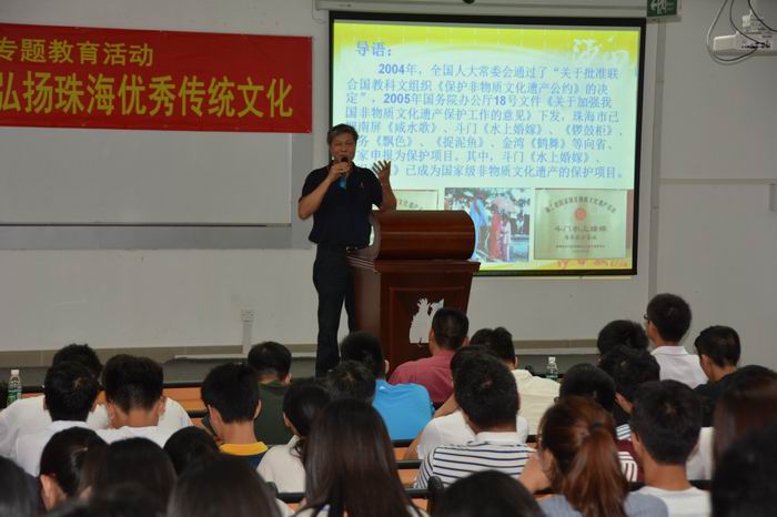 为了更好地宣传本土文化,传承和弘扬珠海优秀传统文化,6月15日下午,在广东科学技术职业学院的邀请下,珠海理工沙田民歌工作室主持人黄华欢书记在机械与电子工程学院开设了题为“用社会主义核心价值观凝心聚力,传承弘扬珠海优秀传统文化”的专题讲座,吸引了200多名师生前来聆听。