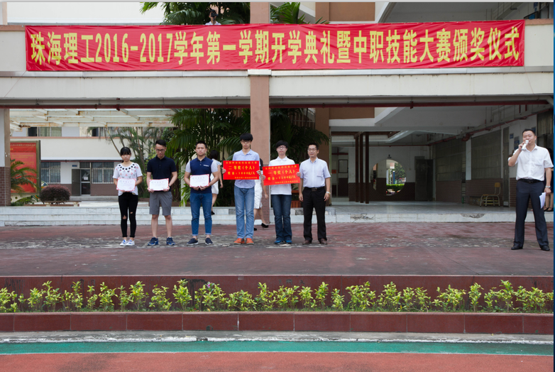 与此同时,珠海理工南校区也在该校区操场举行了2016-2017学年第一学期开学典礼暨中职技能大赛颁奖仪式。