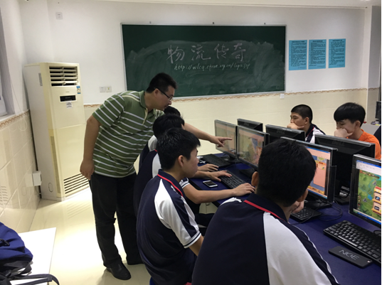 物流部金正华部长正在指导学生进行比赛