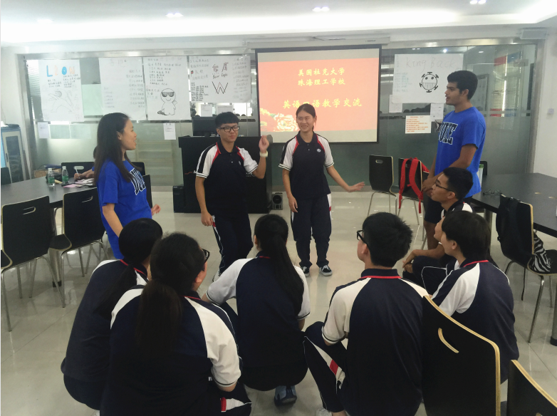 6月21日下午,美国杜克大学顾晓梅教授率领12位美国大学生来我校开展中西文化交流和英语口语课堂教学。