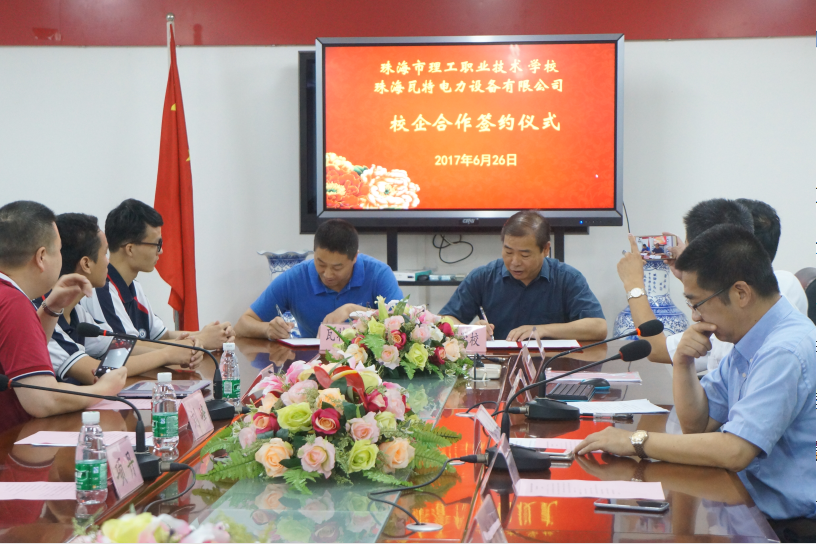 6月26日上午,我校和珠海瓦特电力设备有限公司签订了校企深度融合的合作协议。