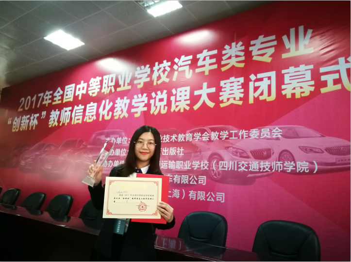 11月28日,2017年全国中等职业学校汽车类“创新杯”教师信息化教学说课大赛在四川成都落下帷幕,市理工学校邝嘉敏、邱飞勇老师代表广东省参加比赛并分获个人一、二等奖及团体一等奖。在12月1日结束的2017年全国中等职业学校旅游服务类专业“创新杯”教师信息化教学说课大赛中,学校龙洁瑜老师荣获旅游服务类个人二等奖。
