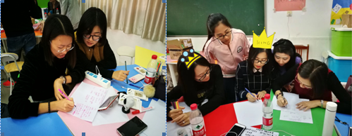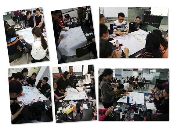 在香洲校区和斗门校区的培训班上,来自南方医科大学的沈群教授和安徽工商职业学院的支凤宁老师主讲《革故鼎新蓝墨云班课在教学中的应用提升》,分别从班课简介、应用情境、用户体验和教学案例等方面介绍云班课,他们通过一个个游戏互动、体验设计入手,带大家开始了云班课的实践之旅。两位老师让大家结合自身经验和课上所学,尝试混合式教学的课堂活动设计并上台展示。各学习小组积极投入到课程设计的讨论、策划和绘制当中。展示环节,每个小组派出最强讲解组合,详细展示了各小组的精心设计与无限创意,每个小组均能将刚刚学习到的蓝墨云班课技术应用起来,培训效果明显。