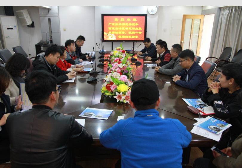 2017年12月26日上午,广东技术师范学院学生处副处长全翠珍女士携同教务处、招生就业办的领导、教师及西藏自治区林芝职业技术学院7名专任教师,一行11人到我校参观、交流。我校石蔚斌副校长带领校工会、办公室、学生处、校企合作与对外交流处工作人员,热情接待了两所高校到访的领导和老师。