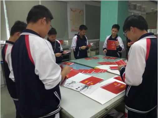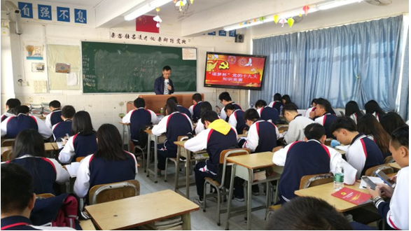 我校参加珠海市中学生“逐梦杯”党的十九大知识竞赛完美收官 我校根据市教育局“逐梦杯”党的十九大知识竞赛文件要求,高度重视,周密部署,稳步推进该项工作。 在学校领导的高度重视下,在班主任和政治老师的督促指导下,学生认真细心地答题,我校交出了一份靓丽的答卷:截止2018年1月3号止,我校在校学生4322人都参与了知识竞赛答题,参与率100%,90分以上的有3778人,优秀率为87.4%。在全市11万中学生排名前1000中我校占了276人,在全市中学中名列前茅,为宣传贯彻党的十九大精神交上了一份满意的答卷。 制定活动实施方案,营造全员参与的浓厚氛围 召开政治科组会议,部署落实竞赛题库学习指导工作 印刷竞赛题库材料,安排全体师生全面学习题库知识 布置学生认真答题,学生高质量完成知识竞赛答题