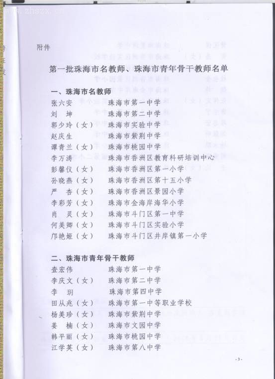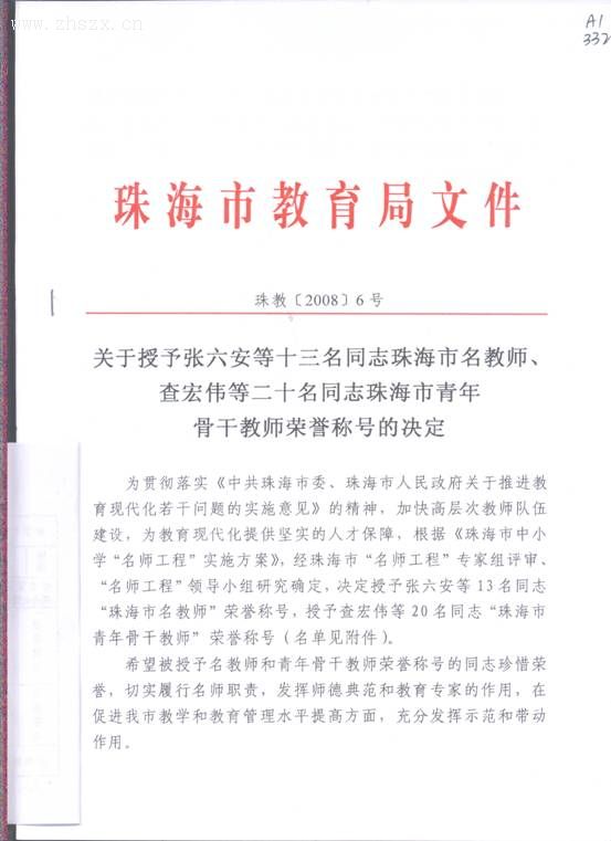 转发《关于授予张六安等十三名同志珠海名教师、查宏伟等二十名同志珠海市青年骨干教师荣誉称号的决定》