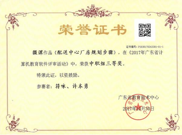 在广东省教育技术中心举办的“2017年广东省计算机教育软件评审活动”中,我校教师自行研发的两项作品获奖,对获奖老师表示祝贺!