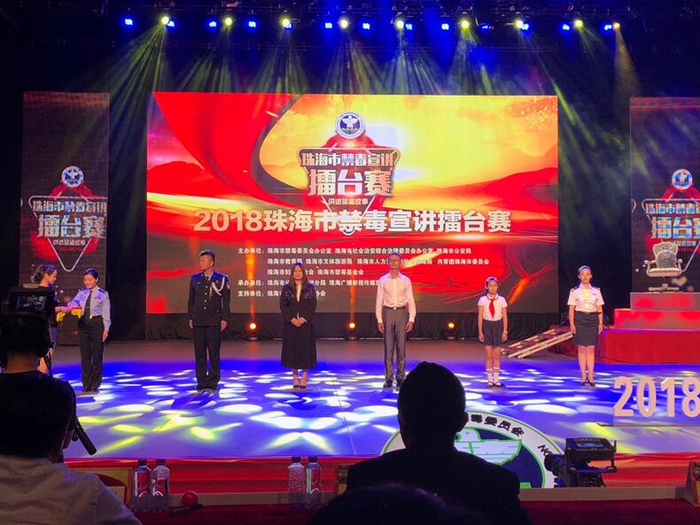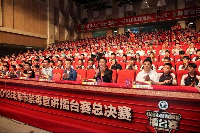 我校受邀参加了珠海广播电视台《珠海市 “6•26”大型禁毒主题宣传日活动》节目的录制。广东省禁毒办副主任何伟钦,珠海市委常委、市委政法委书记张强,市人大常委会副主任黄锐,副市长、市公安局局长张锐,市政协副主席陈仁福,各区禁毒办、镇街、珠海市高校领导和大中学生、公安民警代表、参赛选手、禁毒工作者等逾五百人参加了活动。