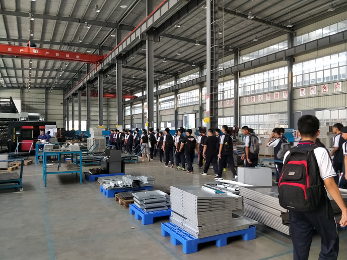 18航粤班、18机电班在张炜部长的带领下,前往广东航粤机电设备有限公司参观见习。在公司负责人热情、细致、专业的接待和讲解中,同学们依次参观了装配中心、钣金中心、物流中心和员工行政楼,了解了公司的企业文化、作业流程和行业标准。