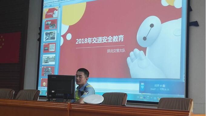 10月15日上午,拱北交警大队应邀到我校南校区开展交通安全普法讲座。洪东鸿警官和杨警官围绕《道路安全法》,用详实的案例和图片,深入浅出地向学生开展交通安全普法宣传。杨警官通过发生在珠海市民身边的触目惊心的交通违法死亡事故案例,告诫学生“关爱生命,文明出行”,让学生感受了一场深刻的交通安全教育。