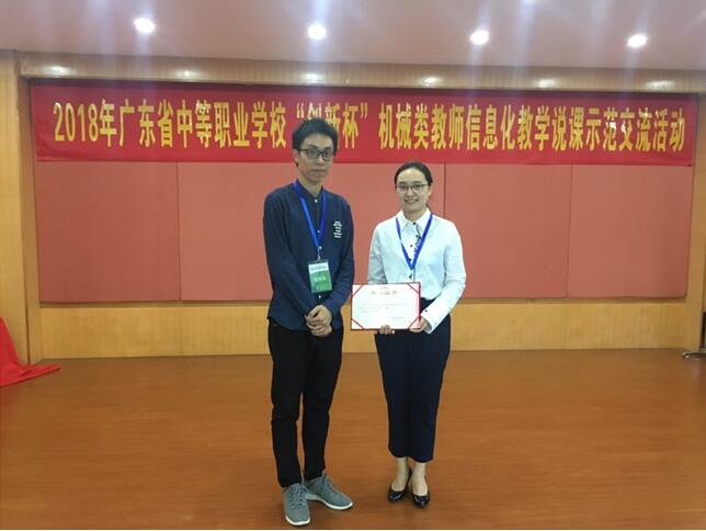 2018年10月20日,2018年广东省中等职业学校机械类教师“创新杯”信息化教学说课示范交流活动在广州省轻工职业学校举行,我校王倩老师参加了此次交流活动,并取得佳绩。