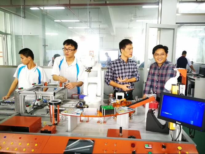随着我国制造行业的不断转型,机器人技术人才成为很多企业的热门需求。为顺应珠海市“三高一特”“智能智造”产业发展需求,为高素质工业机器人产业提供人才支撑,我校抢抓机遇,整合电气运行与控制专业优质资源,开设“工业机器人应用与维护”专业。自2016年开设机器人技术应用专业以来,我校师生积极与来自兄弟院校的领导、专家和老师和同学们友好交流、共同探索,他们对我校电气部机器人技术应用专业建设给予了高度评价和由衷赞赏。