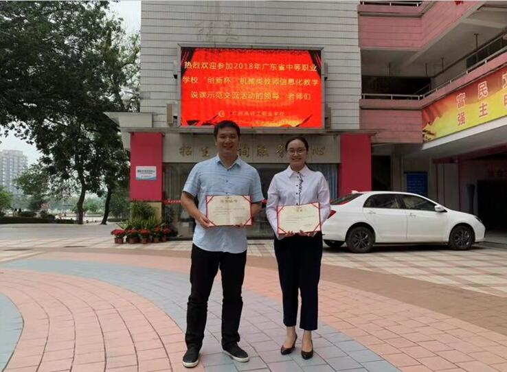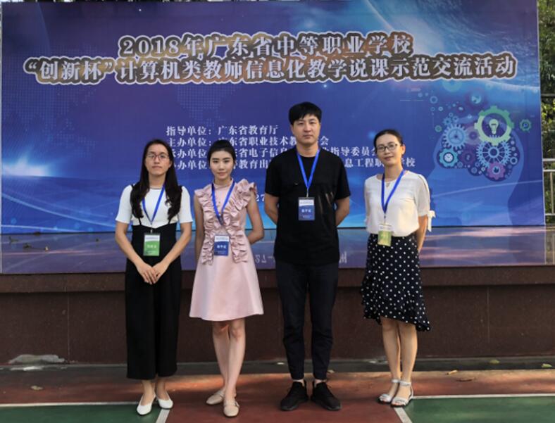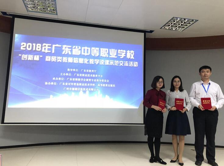 近日,由广东省职业技术教育学会主办的2018年广东省中等职业学校“创新杯”教师信息化教学说课示范交流活动落下帷幕,我校选派的9名参赛教师再创佳绩,最终获得5项一等奖、2项二等奖、2项三等奖,其中获得一等奖的王倩、范云龙、邱飞勇等3位老师还将代表广东省参加国赛。同时,学校还获得优秀组织奖。