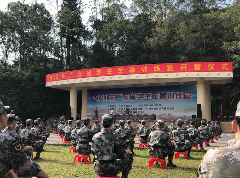 10月21日我们抵达广州番禺国防教育训练基地。10月22日,2018年广东省学生军事训练营正式开营,省军区副司令员宋海巍少将宣布训练营开营并授旗,省教育厅副巡视员邱克楠部署训练营总体工作安排,省军区战备建设局副局长袁卫兵大校主持仪式,将体验为期五天的“军营生活”。