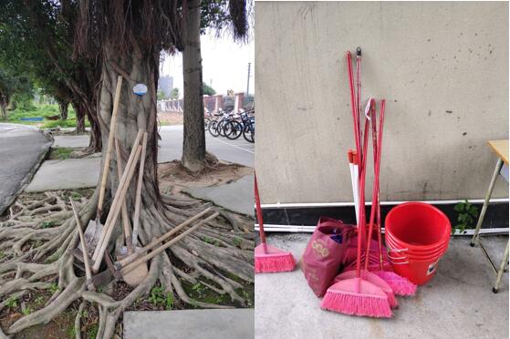 梁建彬同志借来铁锹、铲子、手套,扫帚、垃圾铲等工具。
