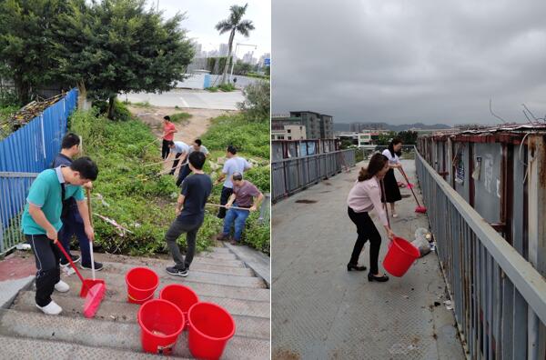 近日来,斗门校区门前的天桥桥面垃圾较多,桥下杂草丛生,尤其是天桥的入口处几乎被杂草包围,严重影响了师生上下天桥。信息技术党支部发现问题后,提出开展义务劳动的建议,得到学校党委、党总支及支部党员的大力支持。