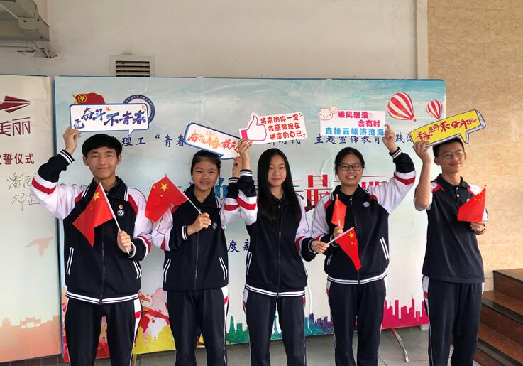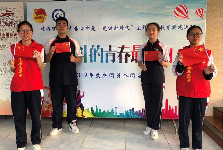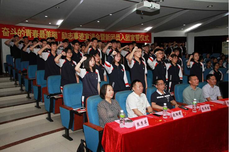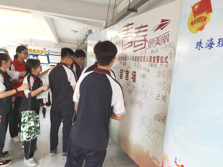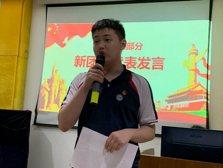 在纪念活动中,2019年度新团员入团宣誓仪式隆重举行,新团员面对鲜艳的团旗,高举右拳,庄严宣誓,集体作出人生中的第一个意义非凡的承诺。参加活动的学校领导为新团员作了勉励讲话并在留言墙上写下祝福,鼓励广大青年团员心向祖国心向党,用奋斗的青春建功新时代,祝贺新团员们成为光荣的中国共产主义青年团团员。