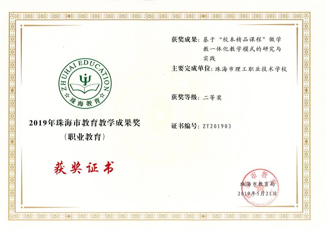 喜报| 我校两项目获2019年珠海市教育教学成果奖中职教育类二等奖