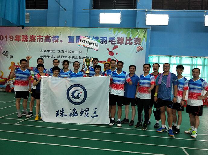 好消息!我校教职工羽毛球队继获得第一届市直属学校教工羽毛球比赛亚军、第二届比赛冠军之后,近日再次勇夺2019年珠海市高校、直属学校羽毛球比赛团体赛冠军,成功卫冕。