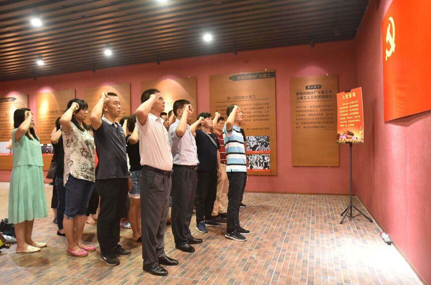在早期工人运动史迹陈列馆,全体党员面对鲜红的中国共产党党旗,高举右拳,重温入党誓词,重读党章内容,庄严宣誓共产党人坚定的理想信念。党员从中解读党的初心,将入党誓词和党章内容内化于心、外化于行,用习近平新时代中国特色社会主义思想武装头脑,刻苦钻研、牢记使命、勇担重任、攻坚克难,为学校教育教学工作做出更大的贡献。